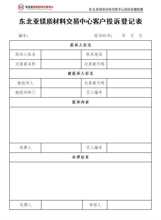 第一條 為有效管理東北亞鎂質材料交易中心(以下簡稱“交易中心”)交易商投訴事宜,特制定本制度。